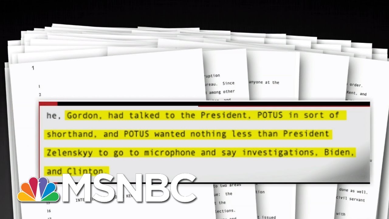 State Dept. official George Kent, a witness in the impeachment inquiry into President Donald Trump, told investigators that the president's conduct in regards to Ukraine was "injurious to the rule of law." Aired on 11/08/19. » Subscribe to MSNBC: